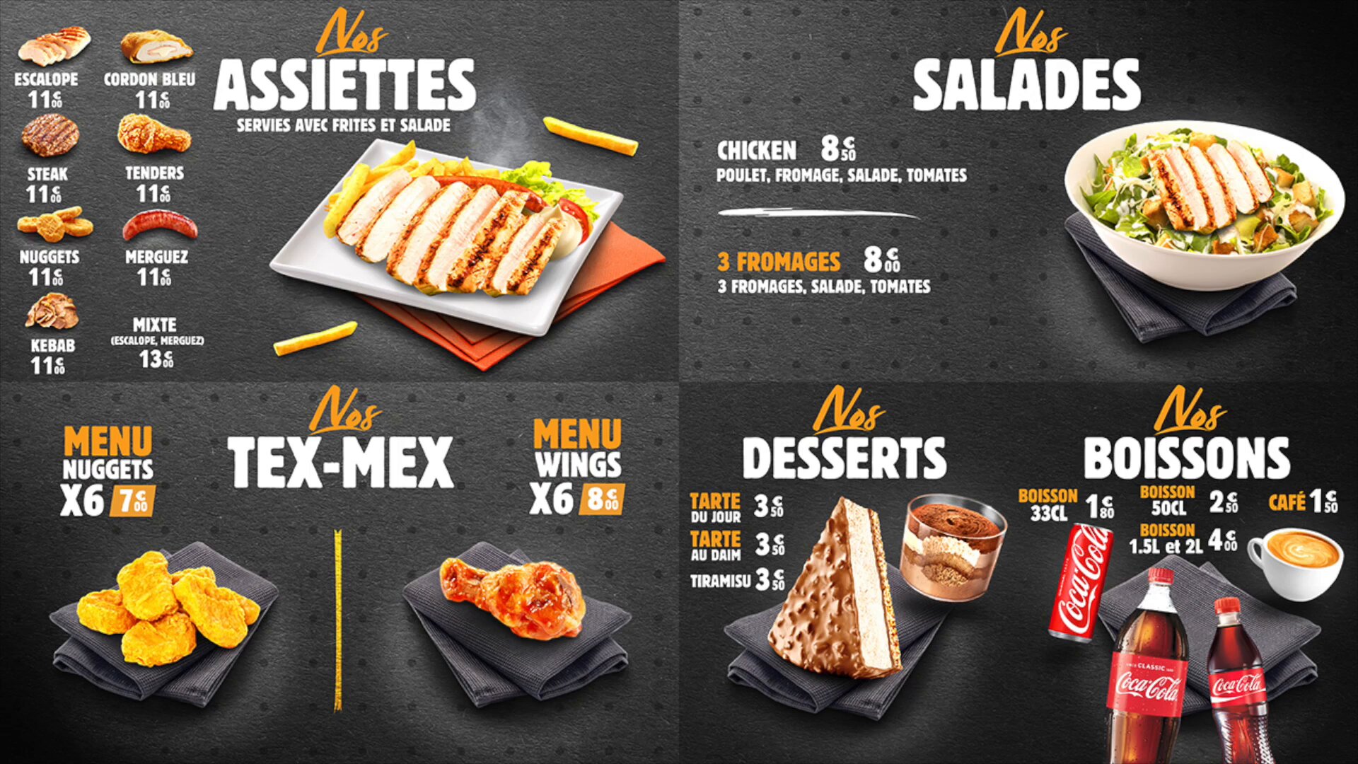 viande de poulet très très sec , frite sec et pas salé très dur à manger si ya pas une boisson à coté , pate à tacos très mou et pas craquante